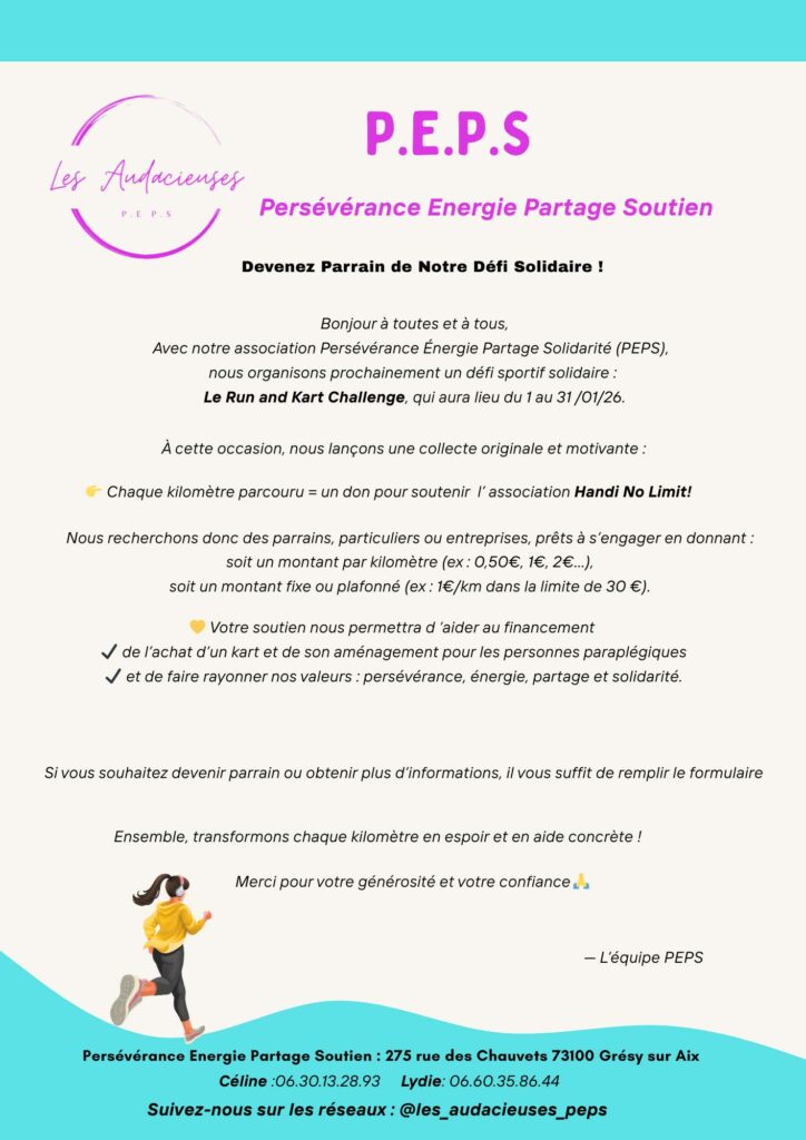 L’association PEPS lance un défi solidaire au profit de Handi No Limits, pour les aider à financer un karting adapté aux personnes paraplégiques.